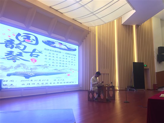 10月27日晚8点,我院在演播厅举办了弘扬中国传统文化,宣传古琴艺术进校园专场公益讲座。讲座由云南省古琴专业委员会理事,中国古琴文化传承曲靖第一人庄家吉老师主讲。庄老师自2006年学习古琴,曾先后多次到扬州,南京,天津,上海,北京等地求教名师,并多次参加龚一老师、张子盛老师组织的古琴教学活动,为曲靖培养了多名优秀的古琴教师。