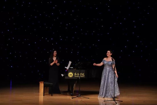 为深入学习贯彻习近平总书记在文艺工作座谈会上的讲话精神和对高校美育工作的重要指示,为了借鉴国外声乐教学经验,有效提高云南省高校青年声乐教师的教育教学能力,我院教师陈郁、向昱参加了由中国教育部国际合作与交流司和云南省教育厅大力支持的“莫斯科国立柴可夫斯基音乐学院声乐大师研修班”项目。11月3日至10日,与来自全省13所大学院校的19位声乐教师一起,在俄罗斯国立柴可夫斯基音乐学院伊琳娜教授和叶卡捷琳娜教授为期一周的精心教学指导下,教师学员们在声乐教育教学能力和专业技能素质方面都有了很大提升,对于作品的演绎和阐述也有了更加严谨的把握,此次大师班于11月10日正式结业,并于当晚19:00在红河学院演播厅举行了结业典礼音乐会,陈郁副教授演唱了歌剧《艺术家的生涯》中的咏叹调《漫步街上》,向昱老师演唱了《托斯卡》中的咏叹调《星光灿烂》,音乐会在网上进行了同步现场直播。