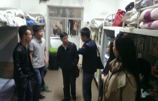 在检查过程中,发现大多数宿舍正常,无安全隐患,但仍有个别宿舍存在防范意识不强、用电不规范等问题。对此,学院领导和班主任及时清查,没收了“热得快”等违规电器,并对违反纪律的学生进行严厉的批评教育,并反复强调:每一位同学都要切实做好安全防范工作,养成规范用电,遵守学校规章制度的好习惯。同时,各位领导和班主任对学生的整体住宿情况进行详细了解,丁书记走访到男生所住的桃苑五幢宿舍时,了解到因太阳能被冻坏,学生在本学期开学以来就一直没有热水,便亲自与宿舍管理员沟通,希望学校尽快维修解决,认真解决同学们在日常学习和生活中存在的困难。