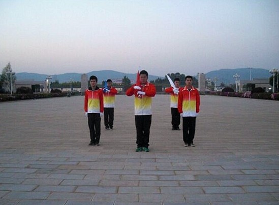 早七点三十分升旗仪式准备就绪,在全体师生的注视下,学院国旗班迈着铿锵的步伐来到国旗台下,在激昂的《义勇军进行曲》中,升旗手振臂一挥,鲜艳的五星红旗徐徐展开迎着初升的太阳,在晨曦中迎风飘扬在曲靖师范学院的上空。随后,曲靖师范学院校旗和音乐舞蹈学院院旗也缓缓上升,最后庄严的三面旗帜随风飘扬。