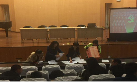4月20号下午,根据学校党委《关于音乐舞蹈学院新一届党总支委员会组成人员候选人的批复》,音乐舞蹈学院党总支在学院演播厅召开了党总支换届选举大会。 会议由孙祖洪副书记主持。柯昌平书记代表上届党总支作工作报告。会议选举柯昌平等五位同志为新一届音乐舞蹈学院党总支委员,并及时召开了党总支委员第一次会议,明确各总支委员的分工及工作职责。