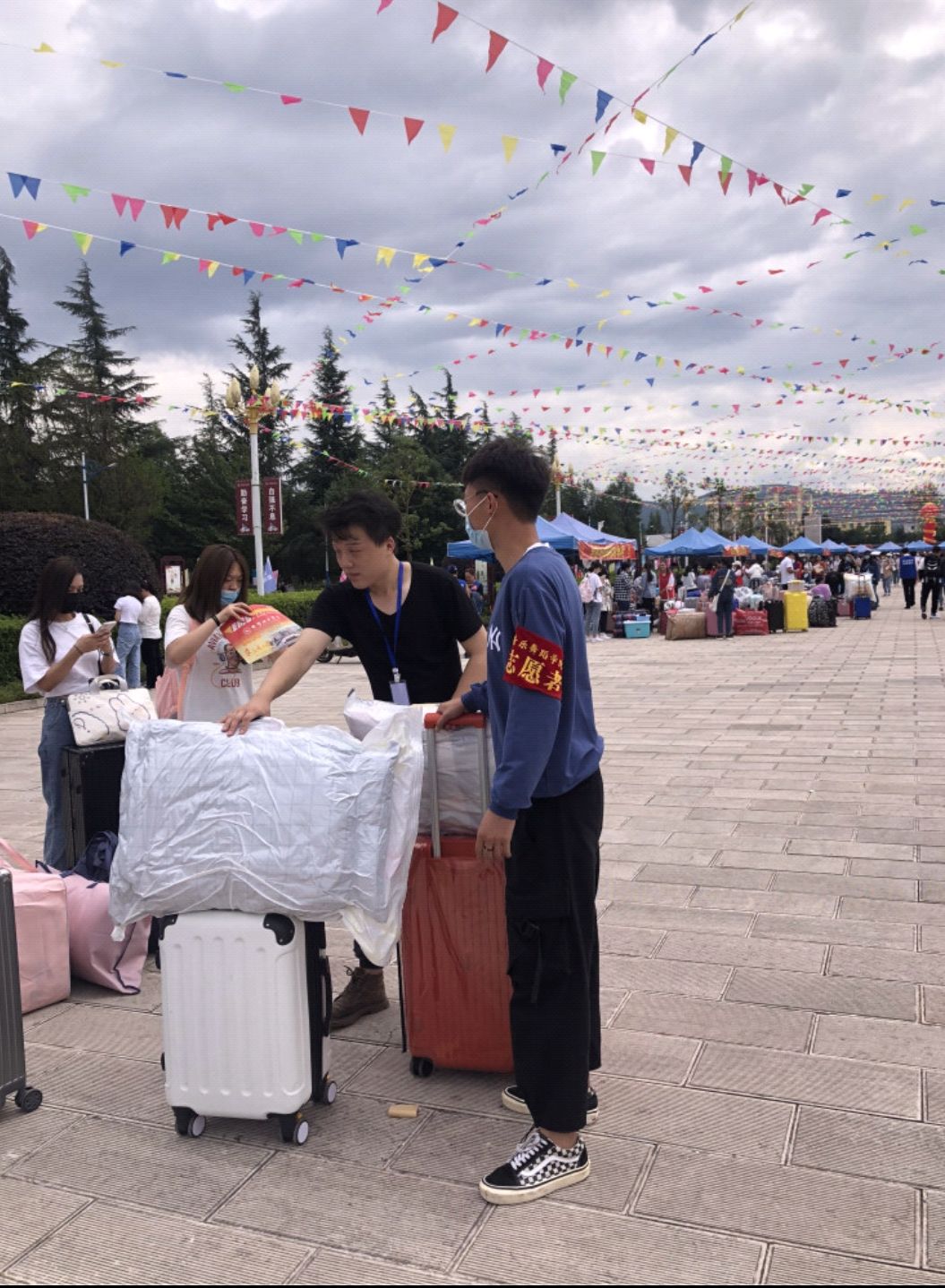 因疫情原因,今年家长不允许进入校内,帮助新同学搬运行李的重任全部落到了志愿者身上,迎新的工作量比往年翻了一番。在学校迎宾大道、宿舍楼下、校摆渡车停车点等主要路出入口处都有负责导引的志愿者佩戴着我院志愿者袖套以及举着音乐舞蹈学院标识牌进行新生报到路线指示,自入校园到宿舍门口都有帮助搬运行李的志愿者帮忙拿运送新生的行李。确保新生能够及时得到相应的帮助,充分感受学院的温暖,也让家长能够放心地把孩子托付给学院。