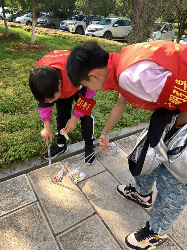 校园文明引导志愿服务由校学生会生活卫生部牵头,各二级学院生活卫生部负责具体安排。我院志愿者同学在校园中捡拾散落的垃圾,以实际行动带动身边的同学;并对校内外人员践踏草坪,攀折花木,损坏公物的行为进行文明劝导;