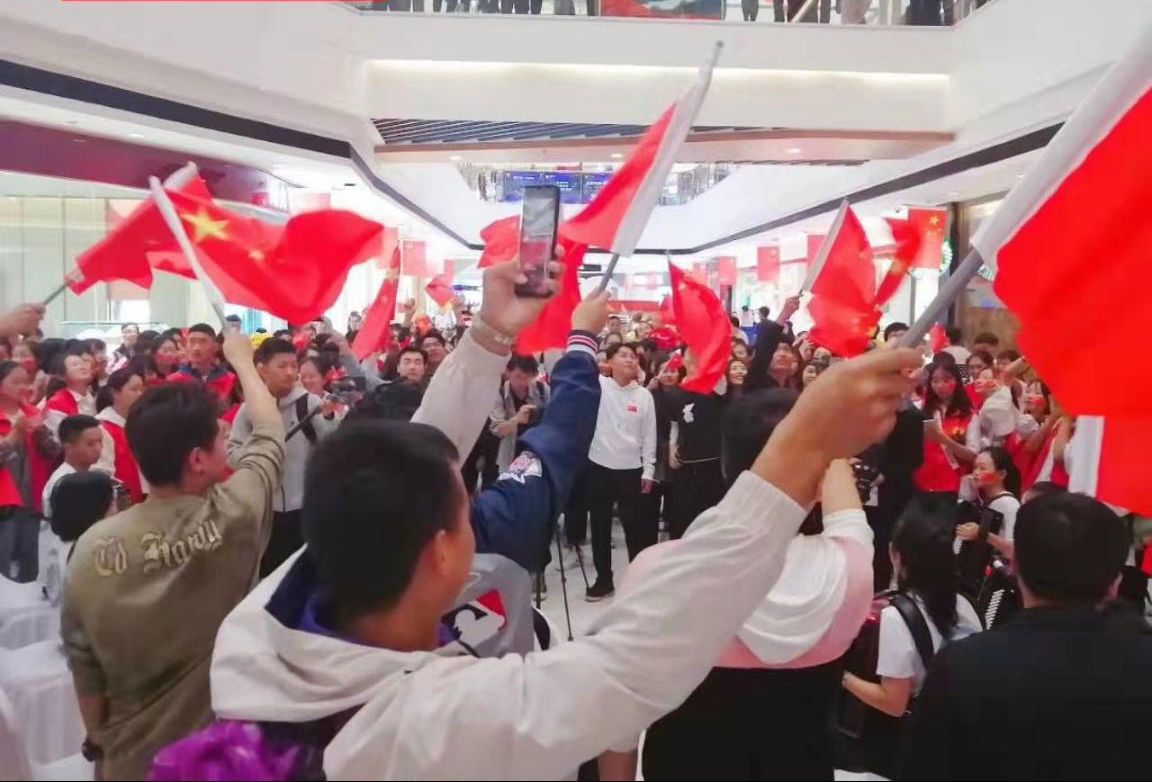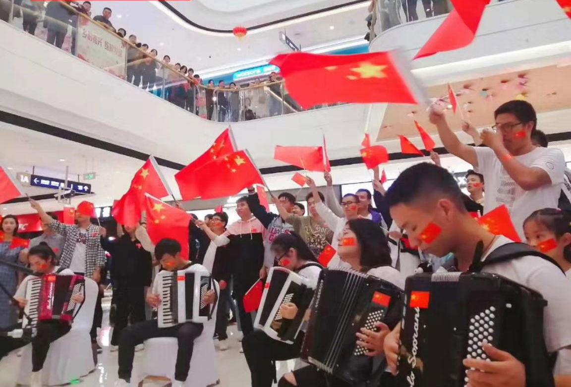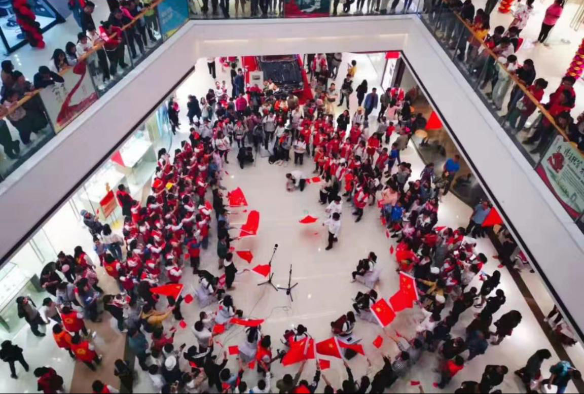 10月1日晚八点,我院团总支学生会成员与经开区志愿者以万达为主阵地,组织了一次快闪活动,共同唱响《我和我的祖国》,深刻传递了对祖国的热爱、大爱。