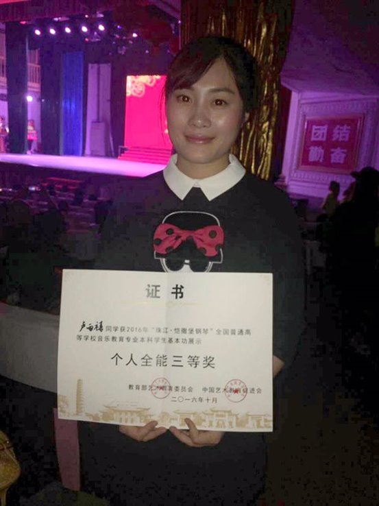 由国家教育部主办,广州珠江钢琴集团股份有限公司、河南大学承办,教育部艺术教育委员会和中国艺术教育促进会协办的2016“珠江·恺撒堡钢琴”全国普通高等学校音乐教育专业本科学生基本功展示活动于10月17日在河南大学落下帷幕。我院代表团喜获团体三等奖;学生卫屹昆荣获得合唱指挥单项奖,个人全能二等奖;学生卢雨禧获得个人全能三等奖。