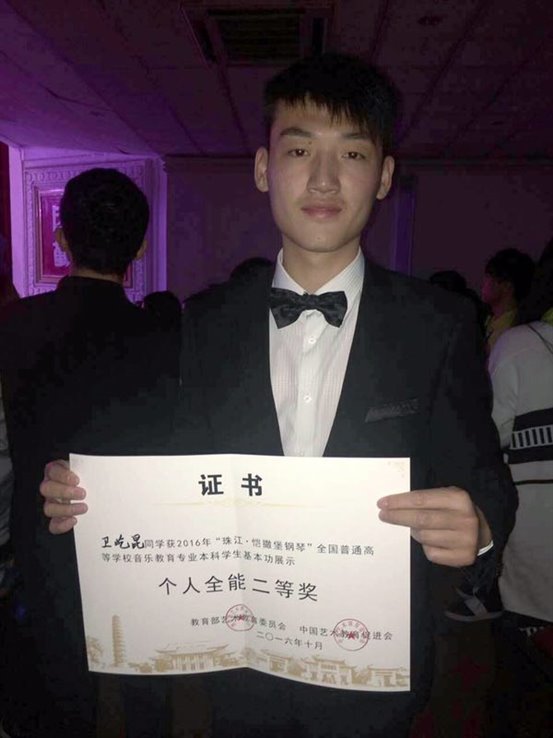 学生卫屹昆荣获得合唱指挥单项奖及个人全能二等奖