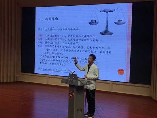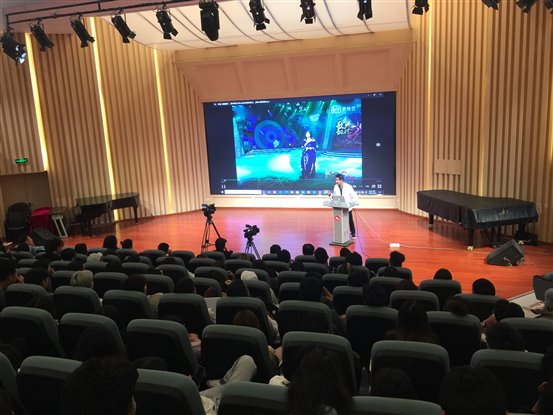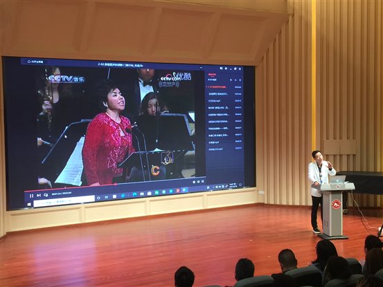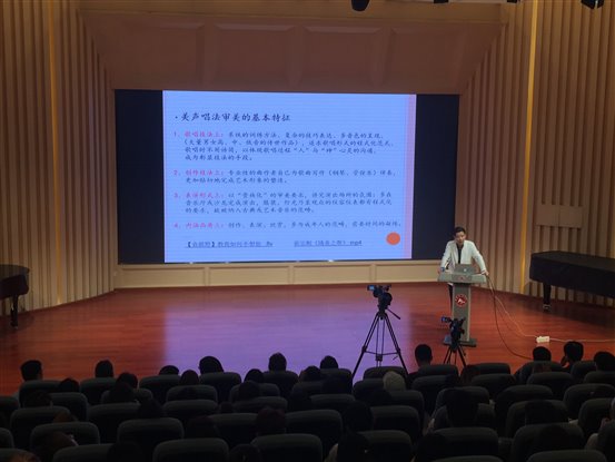 申波教授就我们平日里再熟悉不过的“美声、民族、通俗三种唱法”,结合视听形象生动的分析了其内在蕴含的丰富文化底蕴和音乐内涵。西洋美声唱法源于人类向往与上天神灵的沟通,因此声音位置 高,利于演唱表达庄严肃穆的音乐情感;中国民族唱法承载着中华农耕文化背景,是表现“家国情怀”的中国气韵艺术手段;通俗唱法则是“思想解放”春风下,具有“音乐标签”的个人情感表达。三种唱法已基本形成你中有我、我中有你,不断传承创新、彰显中华审美特征的舞台表演形式,体现出和而不同、美美与共创作与表演的新气象。最后申教授总结到艺术素养之于社会发展对未来人才要求的基本取向,强调未来智能经济时代,具有较高艺术素养的雅者才能立于不败之地。